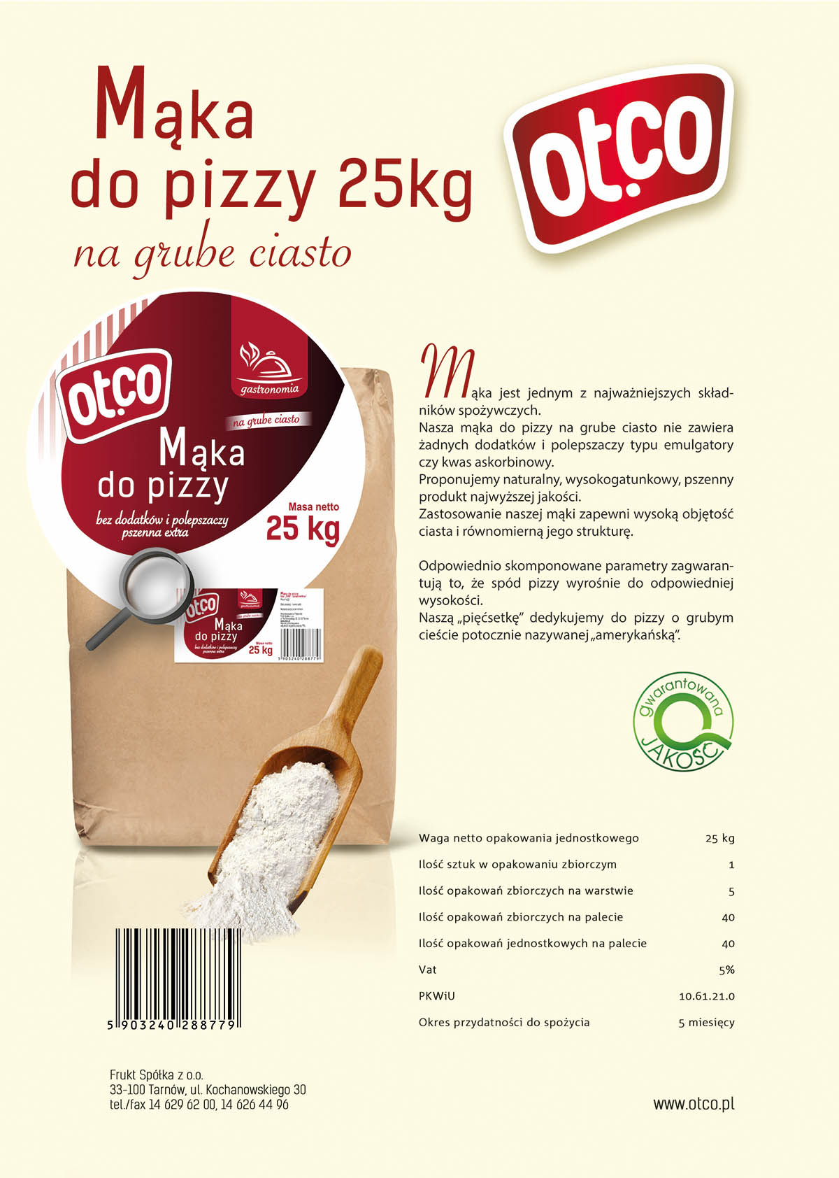 Mąka jest jednym z najważniejszych składników spożywczych. Nasza mąka do pizzy na grube ciasto nie zawiera żadnych dodatkó i polepszaczy typu emulgatory czy kwas askorbinowy.